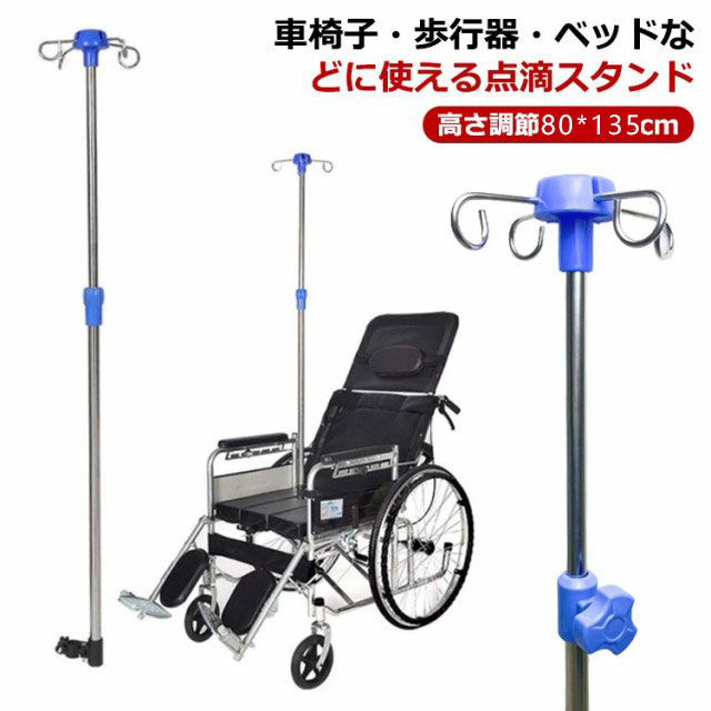 車椅子用 点滴 スタンド ivスタンド 伸縮 フック4本架け イルリガードル台 点滴用 点滴注射医薬品 コンタクト 介護 その他