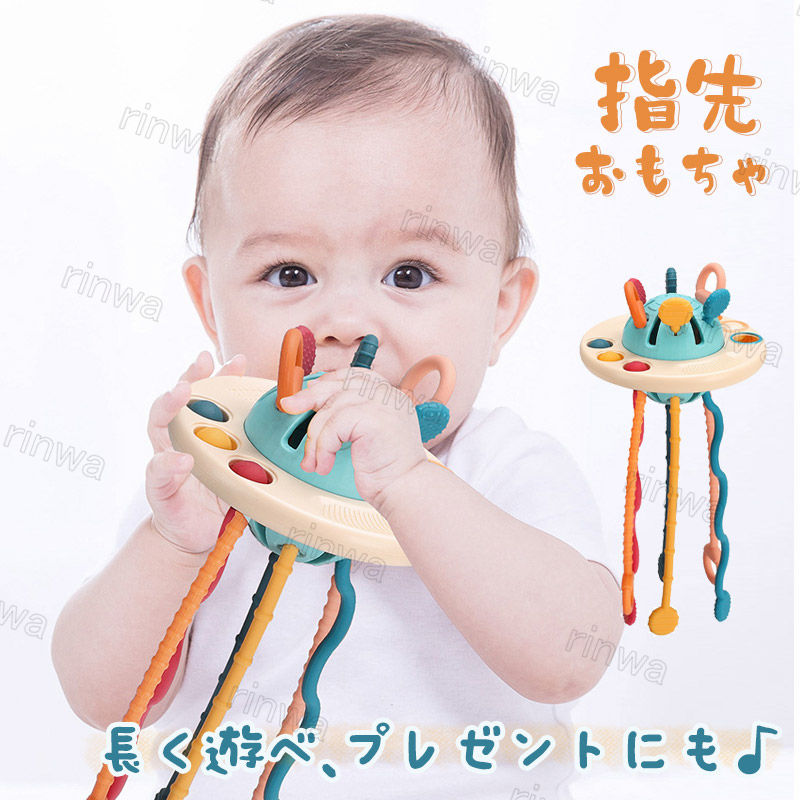おもちゃ プレゼント ベビー 出産祝い 指先訓練 0歳 赤ちゃん 指先トレ 幼児用 プッシュポップ 引く 知覚玩具 トイ 1歳 2歳 3歳 歯固め 新生児 歯がため はがため 音の出るおもちゃ UFO