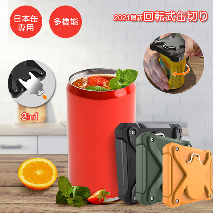 缶切り 2in1 日本缶専用 栓抜き 回転式 多機能 ビール 蓋開け器 マグネット付き オープナーバーツール 缶栓抜き 軽量