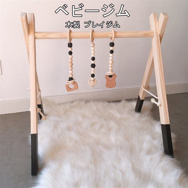 6色展開ベビージム 木製歯固め プレイジム ナチュラル おもちゃ付き ベッドぶら下げ 知育玩具 セットアイテム 木のおもちゃ ラトル 赤ちゃん ベビー 出産お祝い プレゼント