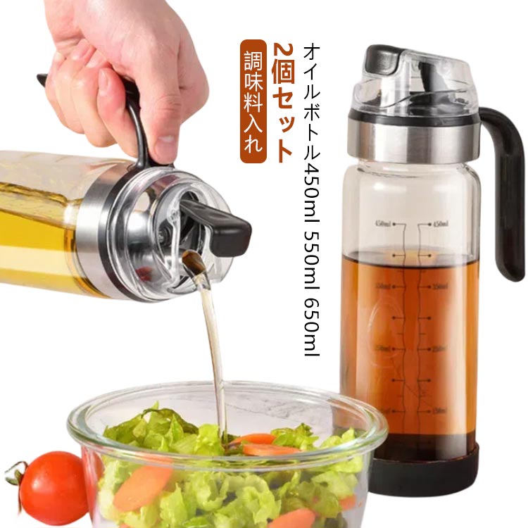 オイルボトル 550ml オイルボトル 2本セット ガラス製 液だれ防止 醤油差し 油いれ ソースボトル 醤油 お酢 ガラスボトル 注ぎやすい
