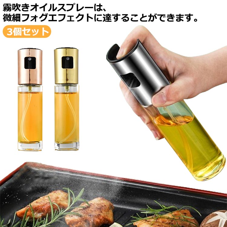オイルスプレーボトル オイルボトル 霧状 漏れ防止 漏れ防止 ガラス 100 醤油 酢 3個セット
