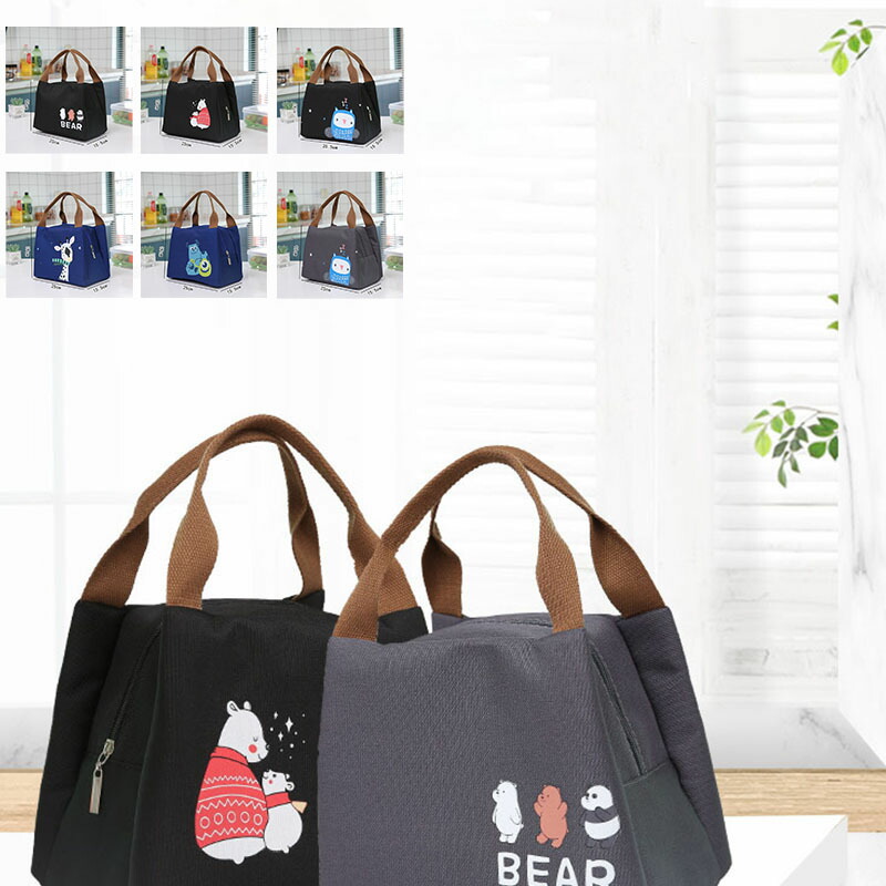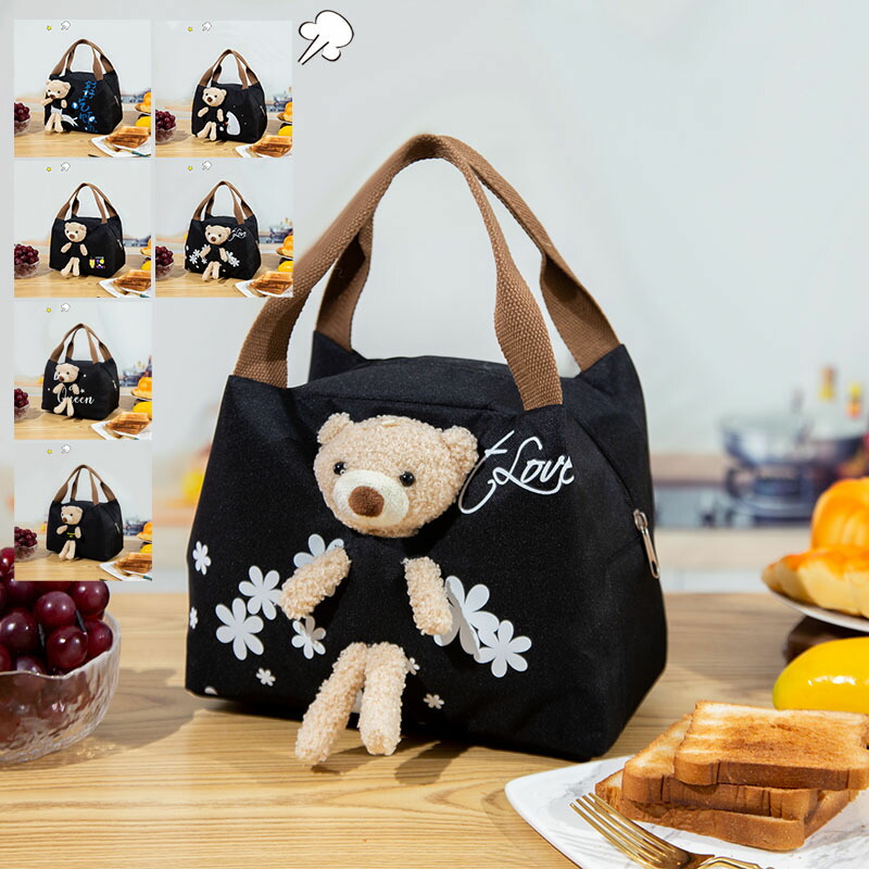 弁当袋 お弁当包み 熊ぬいぐるみ ランチバック ファスナー ポケット付き 手提げ 保温保冷 弁当入れ 大容量 シンプル 男女兼用 便利 通勤 通学 アウトドア おしゃれ