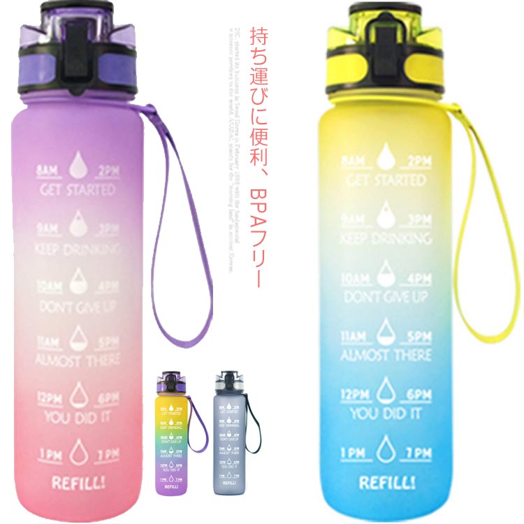 ドリンク 水筒1リットル 水 ボトル 男女兼用 目盛り ボトル スポーツ ウォーターボトル タイムマーカー付き 1 おしゃれ アウトドア メモリ付きボトル 水筒 超軽量 耐冷耐熱 携帯便利 1000