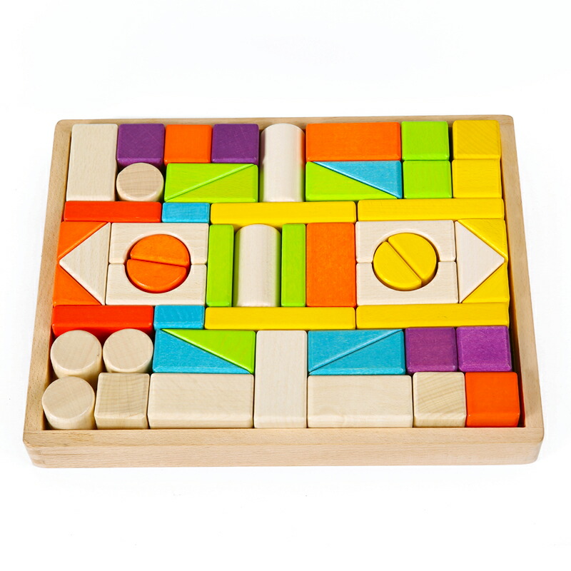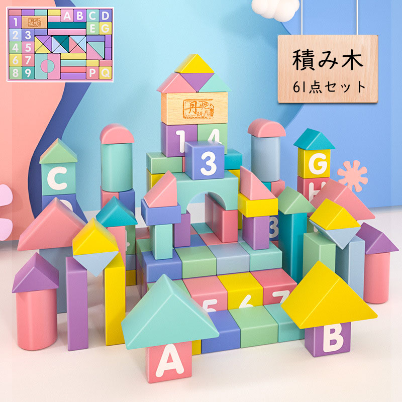 積み木 61点セット 木製 ブロック キャンデー系 カラフル おもちゃ 立体 パズル 丸角 知育玩具 色認識 指先トレーニング 早期開発 赤ちゃん 子供 大人も使える 誕生日 プレゼント