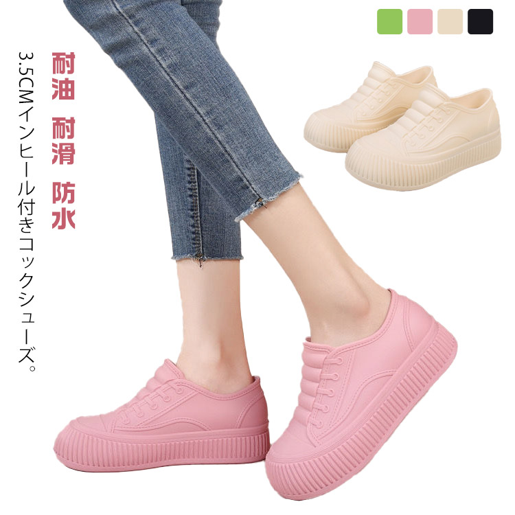 コックシューズ インヒール 完全防水 レインシューズ スニーカー 防水シューズ 厨房靴 パステルカラー カラー シューズ