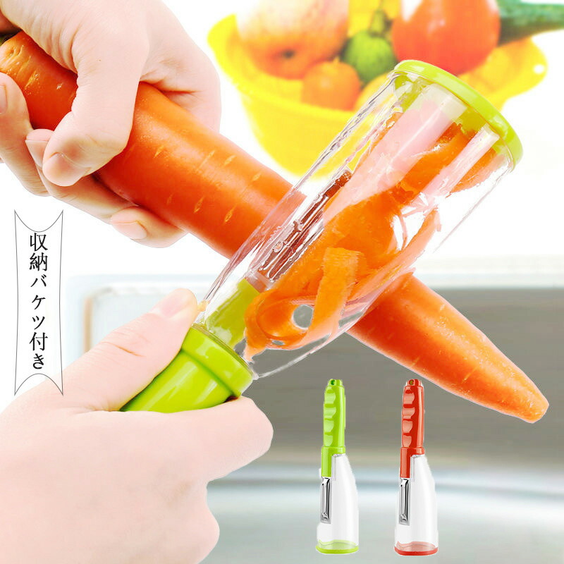 皮むき器 包丁 果物ナイフ 2個セット 収納バケツ付き グリーン レッドキッチン用品 食器 調理器具 調理器具 製菓器具 包丁 ナイフ その他