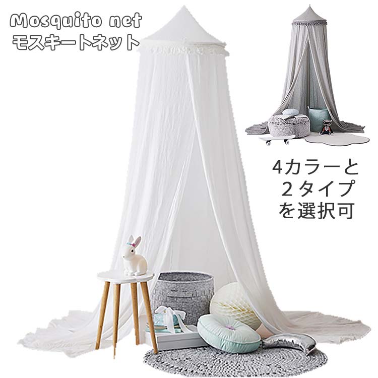 モスキートネット 無地 蚊帳 寝具 スリーピングカーテン 子供部屋 ベビー用品 遊ぶ部屋 フリンジ 丸天蓋 キャノピー シンプル モノトーン 防蚊 防虫 安眠