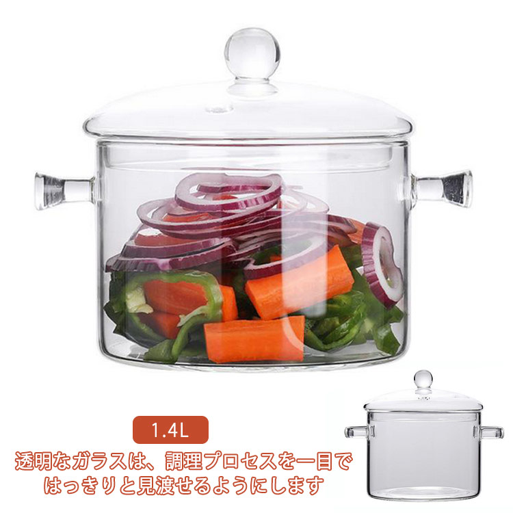 フタ付き 耐熱性 取っ手 スープポット 台所用品 電子レンジ 直火 家庭料理 煮込み鍋 調理器具 透明 1.4 キッチン ガラス鍋透明ガラススープ鍋