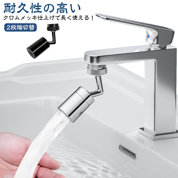 シルバー 節水 蛇口 シャワーヘッド 720°調整可能 水栓ノズル 気泡流水 2段階切替 ブラック 首振り