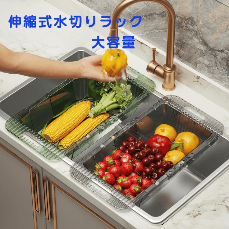 水切りラック 水切りかご 水切り トレー 水きりかご トレイ キッチン用品 キッチンラック 食器棚 水切りかご 伸縮 キッチン収納 スリム シンク横 シンク上 シンク渡し 大容量