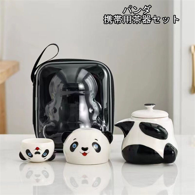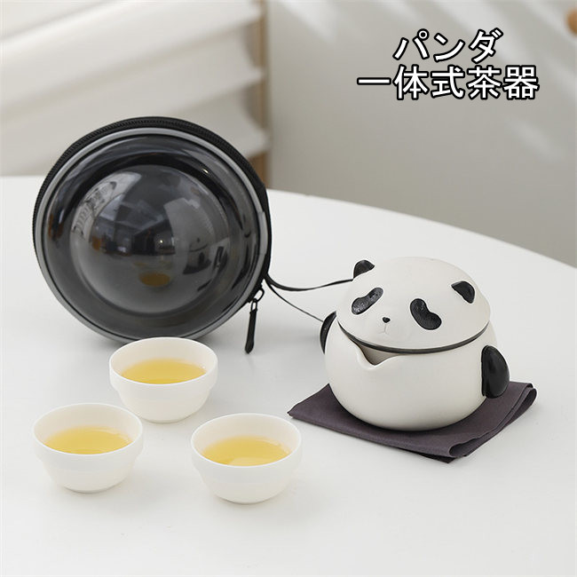 パンダ携帯用茶器セット茶芸 陶器 旅行 収納バッグ付き カンフー茶4点セットコンパクト ティーポット 携帯式 軽量 通勤 お出かけ用茶器セット 贈り物 来客 事務室用旅行アウトドア先便利シンプル 湯呑