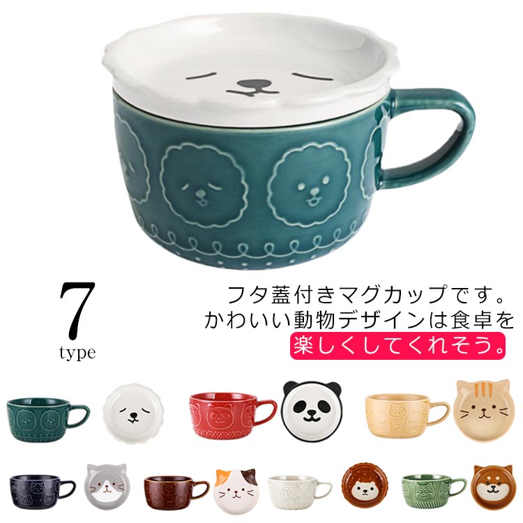 マグカップ 蓋つき コーヒーカップ お茶 紅茶 磁器 陶器 マグ カップ コップ ティーカップ ねこ パンダ 柴犬 コーヒーマグ 恋人 カップル キュート 持ち手付き