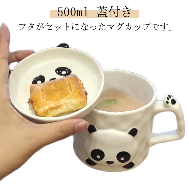 マグカップ 皿 セット マグカップ 500ml 蓋付き 食器 食洗機対応 おしゃれ フタ付マグカップ パンダ おしゃれ コーヒーカップ カップ コーヒー 珈琲