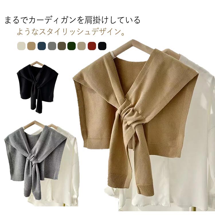 おしゃれ 肩掛けニット 女性 トップス 肩掛け風 レディース フェイクカーディガン ショール 無地 単色 シンプル フェイクカーデ