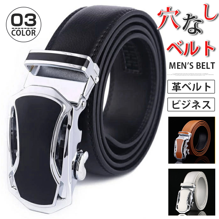 ベルト メンズ 穴なし 無段階 オートロックスライド式 レザーベルト 革ベルト ビジネス 新生活 バックル スライド式 紳士用 父の日