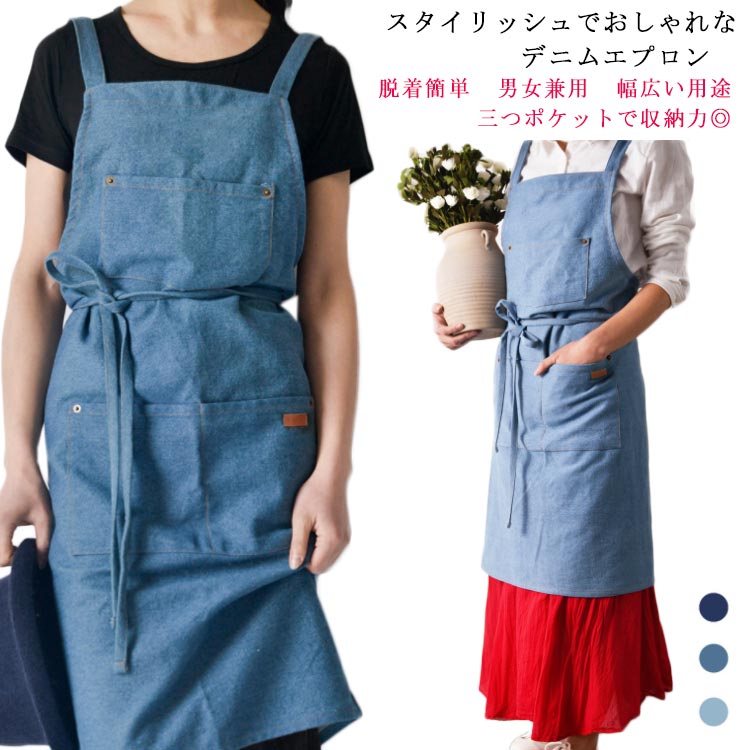 男女兼用 デニムエプロン 作業用 料理教室 エプロン ポケット付き スタイリッシュでおしゃれキッチン用品 食器 調理器具 配膳用品 キッチンファブリック エプロン 三角巾 エプロン