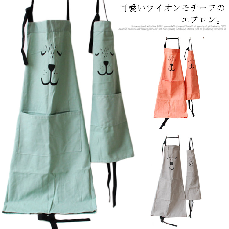 親子お揃いで可愛い エプロン ライオン 大人用 子供用 キッチンキッチン用品 食器 調理器具 配膳用品 キッチンファブリック エプロン 三角巾 エプロン