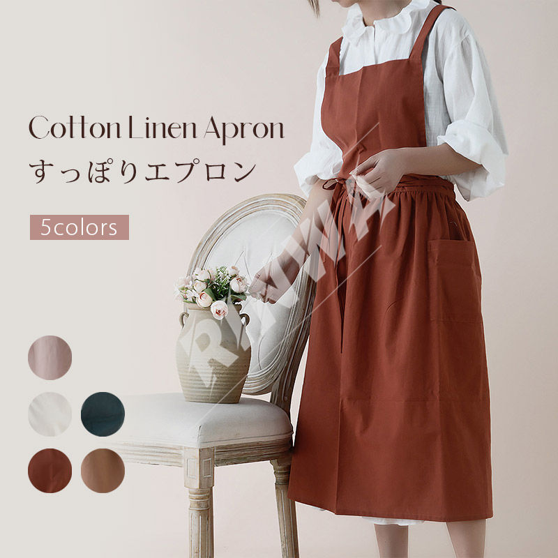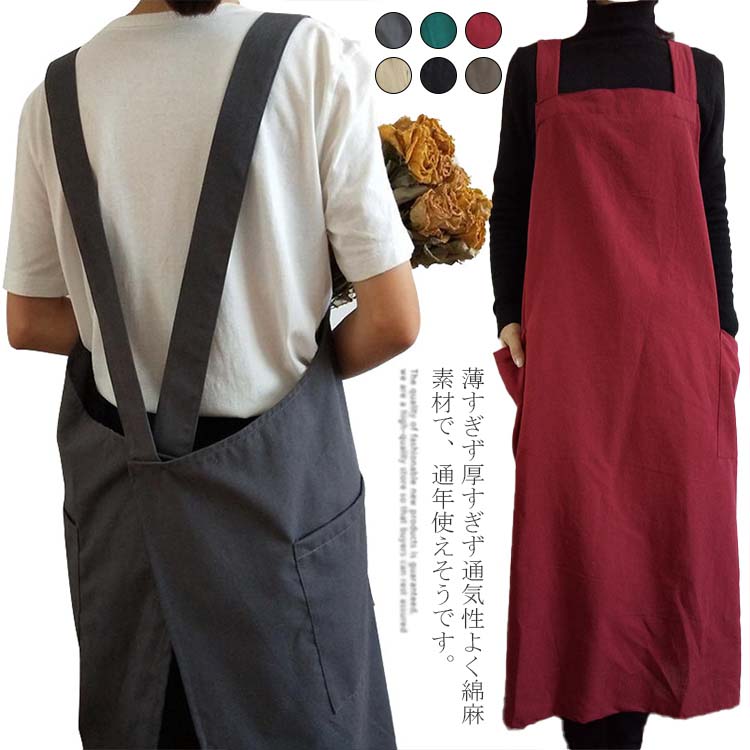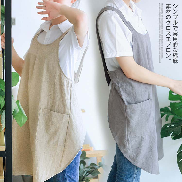 エプロン チュニックエプロン ワンピース キャミワンピ 綿麻 北欧風 実用的 ロング丈 おしゃれ ナチュラル シンプル レディース ゆったり 大きいサイズ カフェエプロン