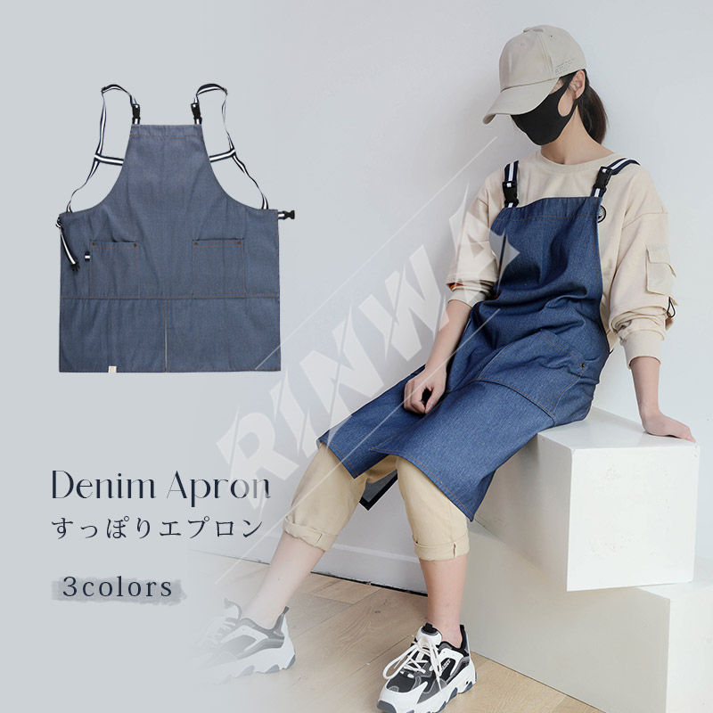 デニム エプロン 男女通用 おしゃれ ワンピース かわいい レディース 保育士 ふんわり シンプル 無地 綿 北欧 母の日