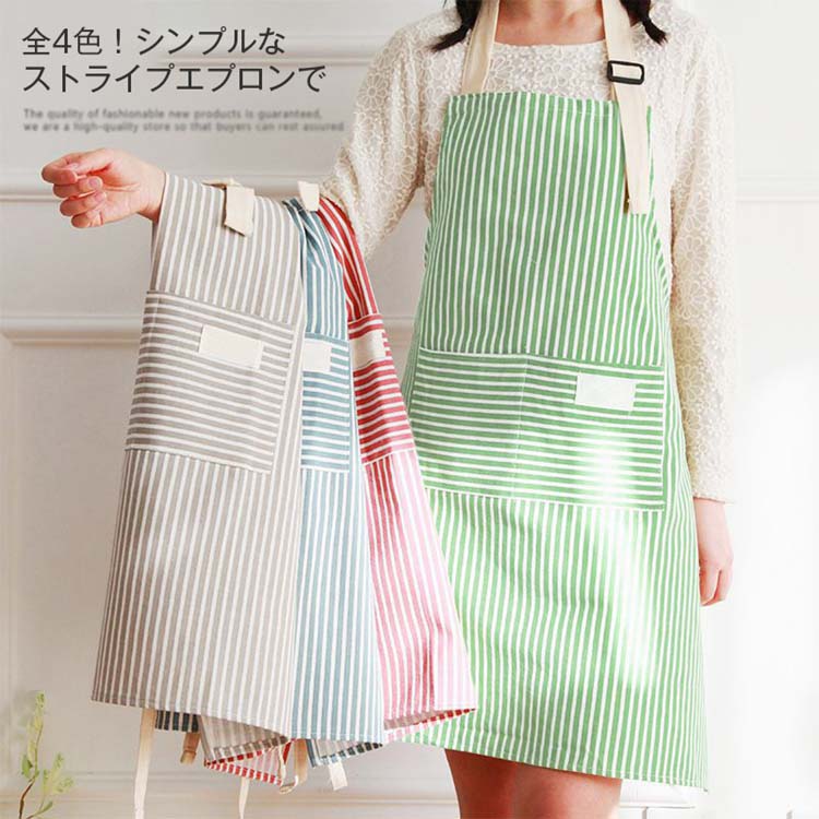 エプロン ロング丈 かわいい ストライプ エプロン 首掛け式 シンプル 保育士 幼稚園 おしゃれ フリーサイズ 着脱が簡単 母の日 プレゼント