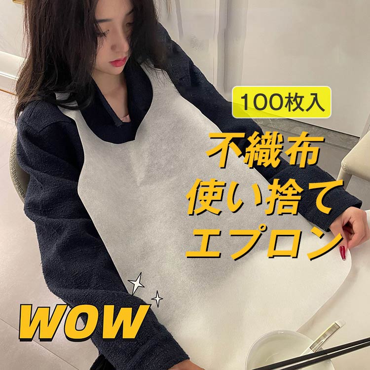 使い捨て エプロン 不織布エプロン 無地 100枚 薄手 介護用エプロン 使い捨てエプロン アウトドア セットネック 前掛け 韓国風 汚れ防止 耐油 防塵 防撥水 シンプル 食事用 業務用 飲食店