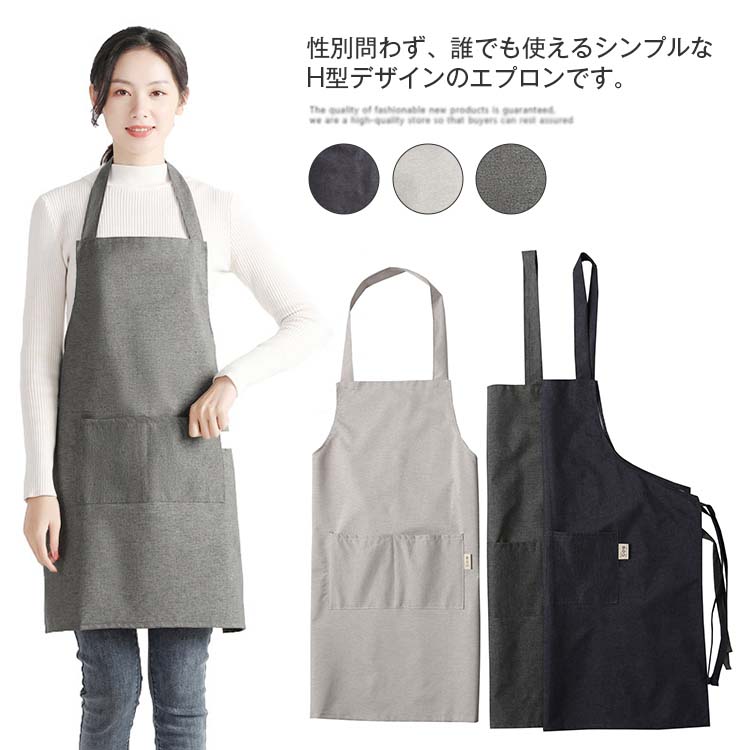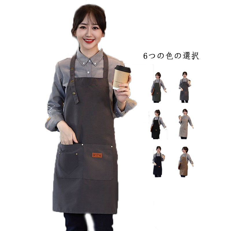 エプロン おしゃれ 首掛け シンプル メンズ レデイース 男女兼用 カフェエプロン 撥水加工 無地 おしゃれ ポケット付き ワークエプロン 汚れ防止 キッチン用品 美容院