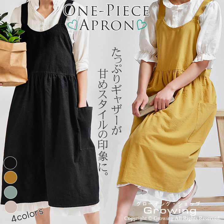選べる 5色 エプロン おしゃれ 母の日 保育士 ワンピース かわいい 大きいサイズ カフェ エプロン 大きいサイズ