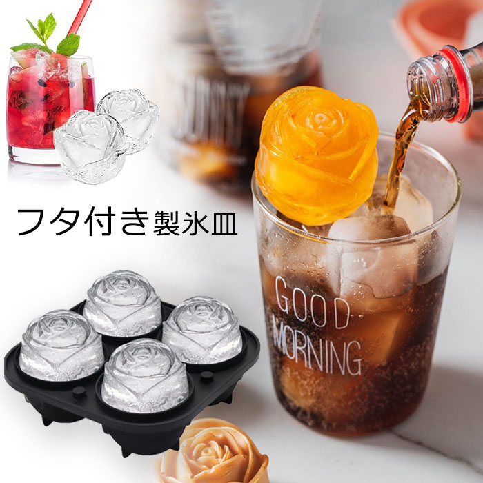 製氷皿 シリコン バラ型 製氷器 バラの形製氷皿 フタ付き 氷格 取り出しやすい 漏れ防止構造 柔らかい 耐久性 ウィスキー ジュース 自宅用 職場用 クラブ用 レストラン用 バー用品