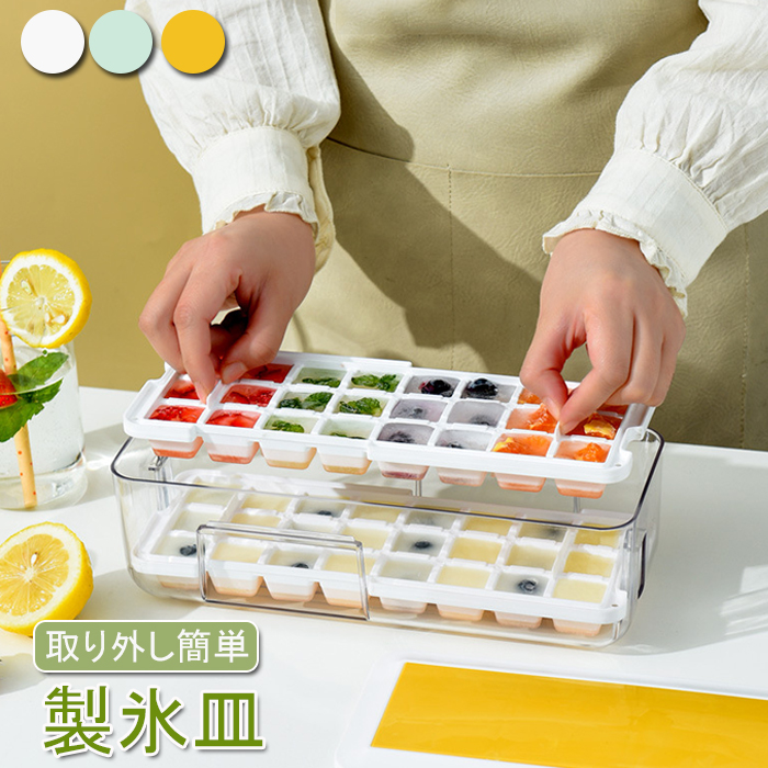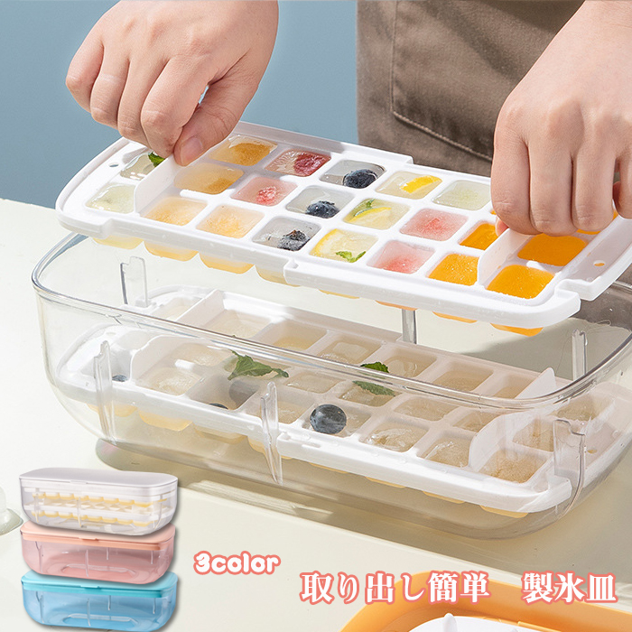 製氷皿 製氷器 シリコン 大容量 32個取り 収納ボックス 蓋付き 取り出し簡単キッチン用品 食器 調理器具 保存容器 調味料入れ 製氷皿