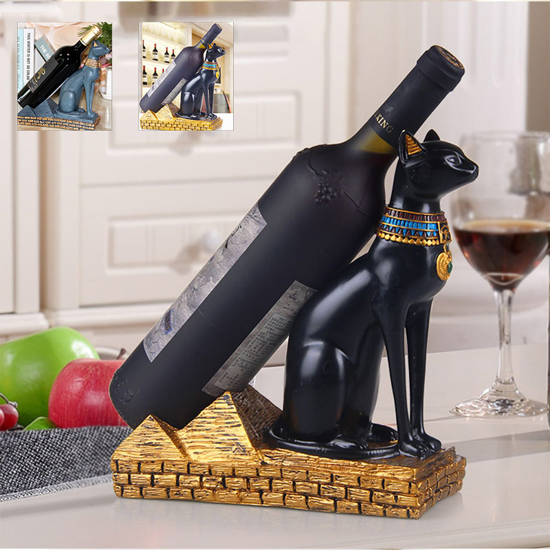 ワインホルダー ボトルホルダー エジプト 置物 猫神モチーフ ワインラック ワイン棚 ワインボトル 手工芸品 猫型 ボトル スタンド