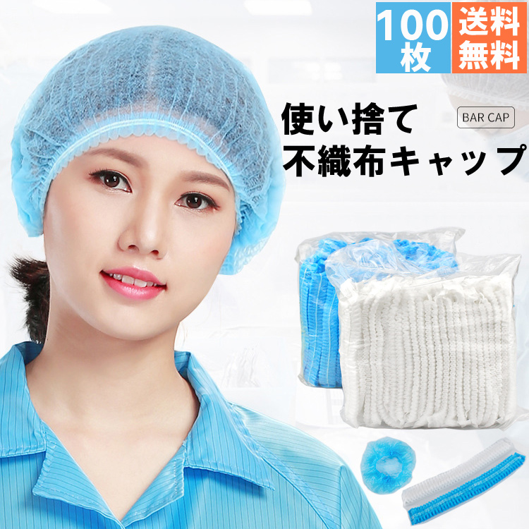 軽くて圧迫感のない不織布製 使い捨て 不織布 キャップ 業務用 クリーンキャップ フリーサイズ 男女兼用 ネットキャップ ケアキャップ 研究 美容院 毛髪落下防止