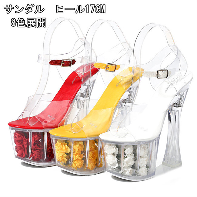 2色展開キャバ サンダル( 17cmヒール ) レディースサンダルローヒール厚底 サンダル クリア 花 クリアヒール クリアサンダル ハイヒール セクシー キャバ コスプレ レディース シューズ 靴