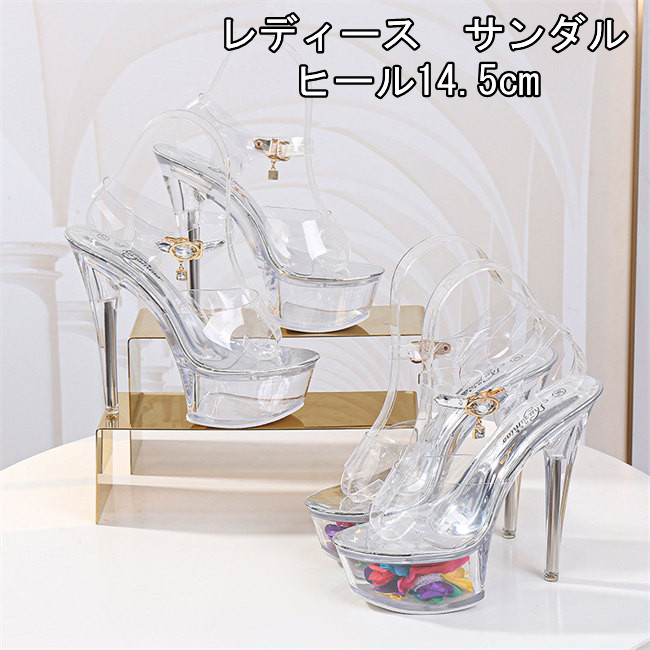 2色展開キャバ サンダル( 14.5ヒール ) レディースサンダルピンヒール厚底 サンダル クリア 花 クリアヒール クリアサンダル ハイヒール セクシー キャバ コスプレ レディース シューズ