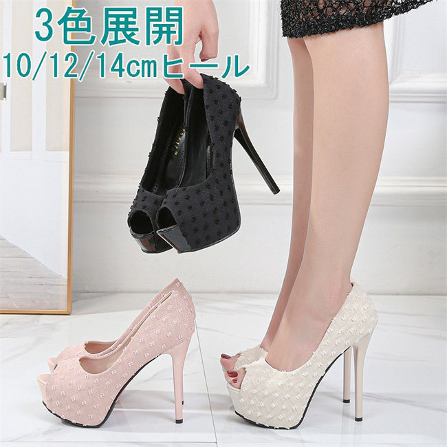 ベージュ10cm34サイズキャバ ストーム厚底 靴 脱げない オープントゥ ハイヒール 結婚式 前厚 キャバシューズ ピンヒール オフィス 美脚 ブライダルシューズ キャバ嬢 発表会 演奏会 上品 歩