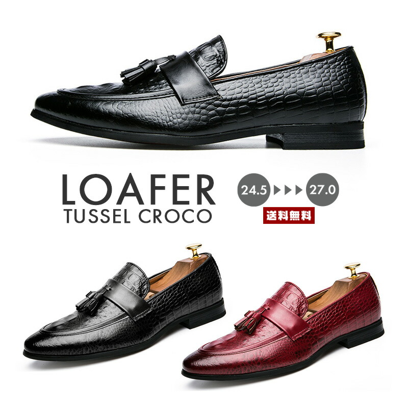 クロコ型押し タッセル ローファー靴 メンズ靴 ローファー