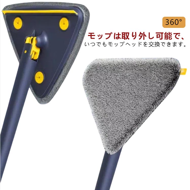 水切りモップ 多機能 360°回転式お掃除モップ 回転モップ三角 4枚交換用布巾付き 絞り機能付き三角モップ モップスティック お掃除モップ