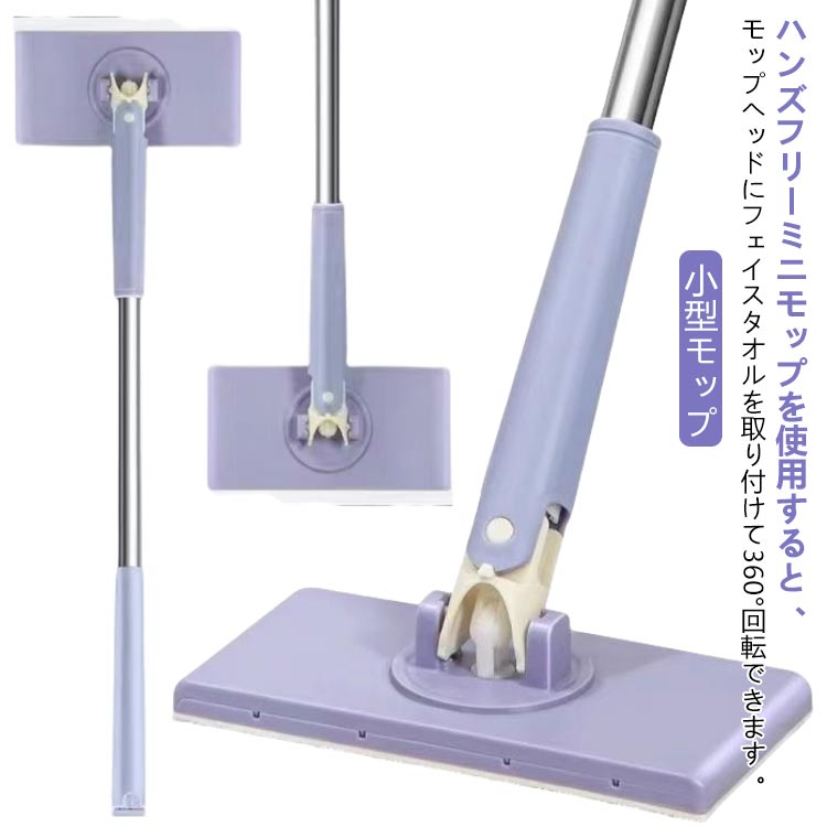 フロア用掃除道具 ハンズフリー ミニモップ フェイスタオル対応 小型モップ 掃除モップ フェイスタオルモップ 多機能