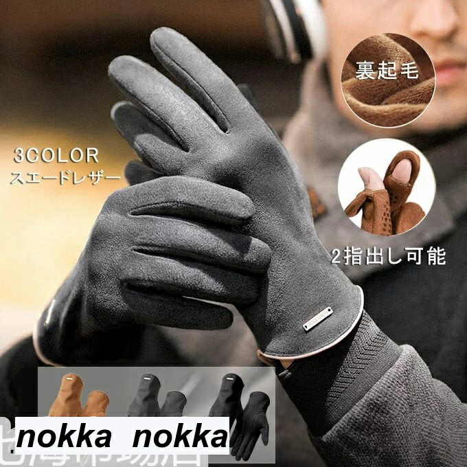 スエード手袋 メンズ 革 手袋 2指出し可能 グローブ 手ぶくろ 合成皮革 防風 防寒 暖かい 裏起毛