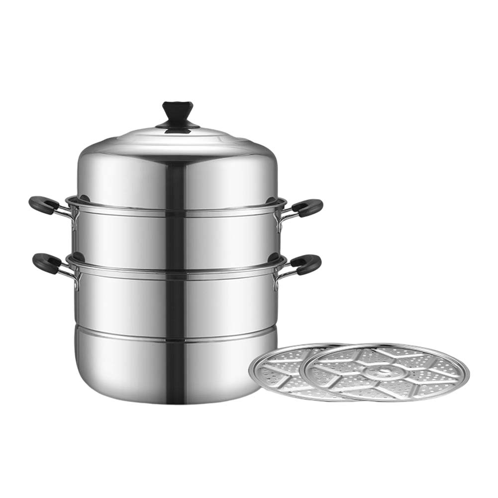 蒸し器 せいろ 蒸鍋 蒸しもの鍋 蒸し鍋 三段 特級深型 鍋蓋付 樹脂加工 ステンレス鋼鍋蓋 対応熱源:ガスコンロ、コンロなど幅広いコンロに対応 7サイズ28 30 32 34 3