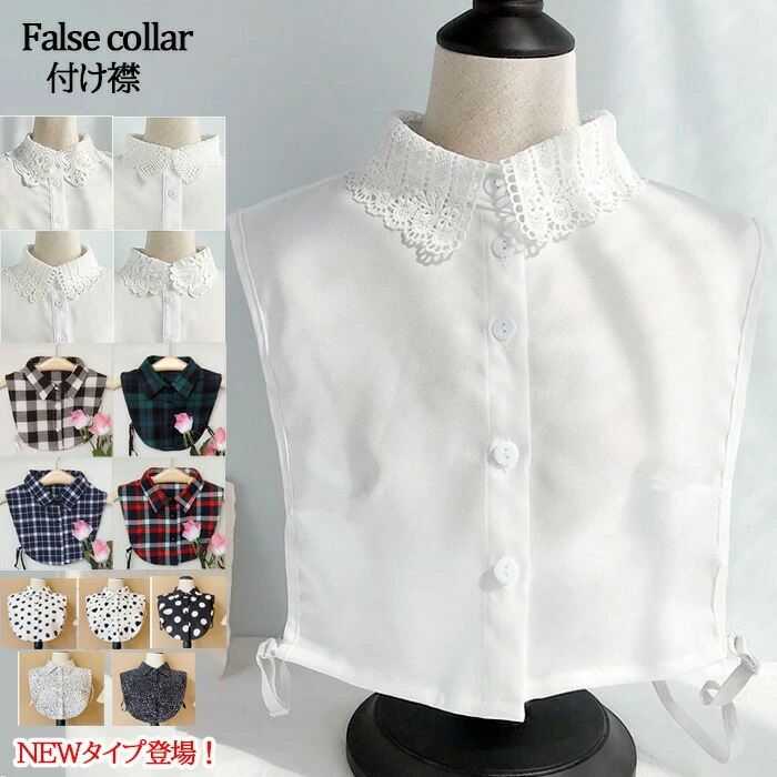 1A18.19付け襟 レース 14タイプから選べる 付け襟 レース レイヤード つけ襟 つけえり レイヤードトップス 重ね着風 襟 ホワイト ブラック チェック柄 ストーン付