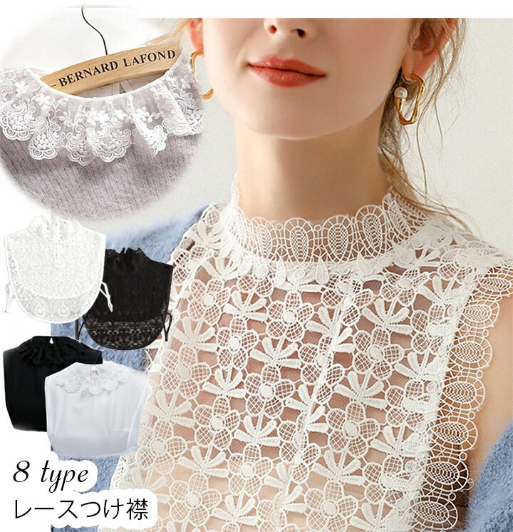 118.19付け襟 レース 14タイプから選べる 付け襟 レース レイヤード つけ襟 つけえり レイヤードトップス 重ね着風 襟 ホワイト ブラック チェック柄 ストーン付