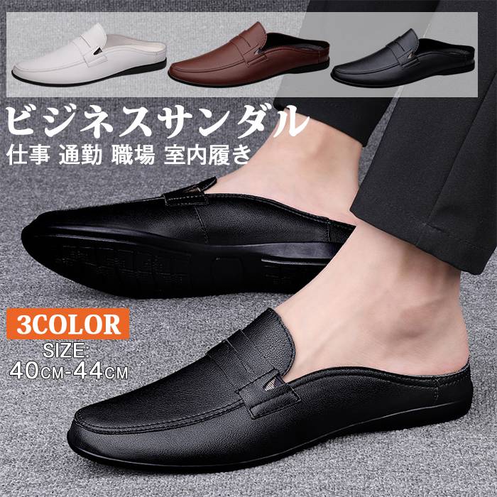 ビジネスサンダル メンズ スリッポン サボサンダル かかとなし モカシン ローファー オフィスサンダル