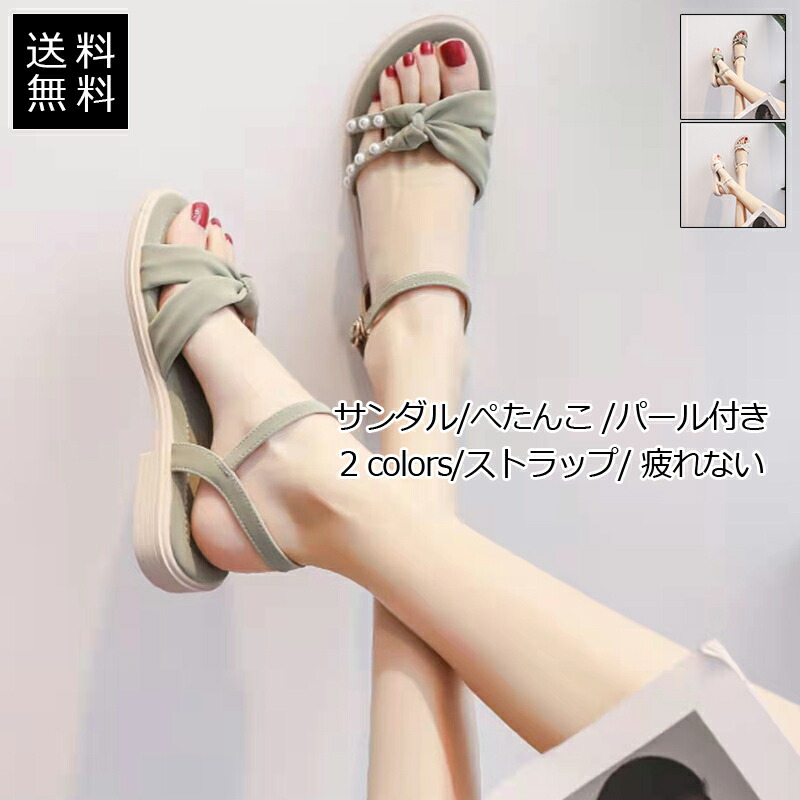 サマーサンダル レディース フラットシューズ パール付き ストラップ 滑りにくい 疲れない 歩きやすい フェミニン アウタドア 夏用 おしゃれ