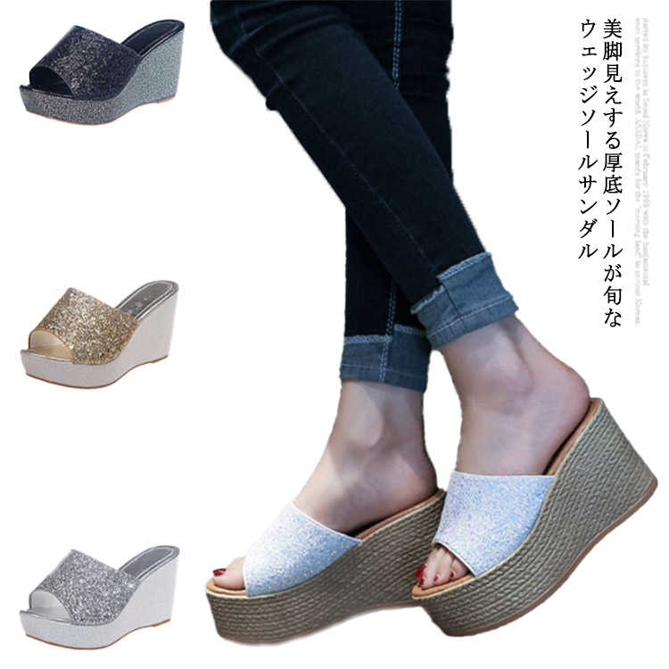 美脚 厚底 ブラック ヒール高い サボサンダル シルバー ホワイト ピンク ウェッジサンダル靴 レディース靴 サンダル ストラップ