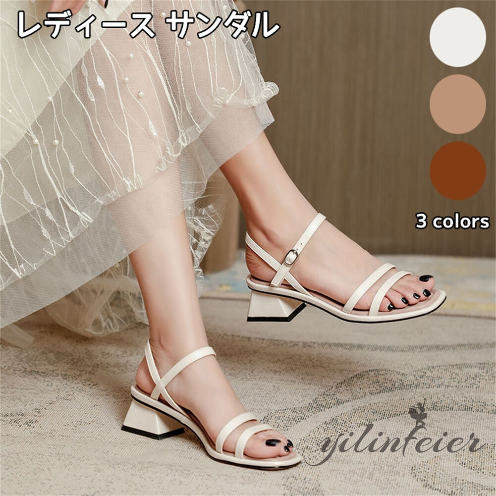 サンダル 調節可能 ミドルヒール 合成ゴム 軽量 夏 女性用 美脚 細いヒール 高級感 華奢 シンプル メモリフォーム 痛くない 通勤 仕事 結婚式 細ストラップ きれいめ おしゃれ