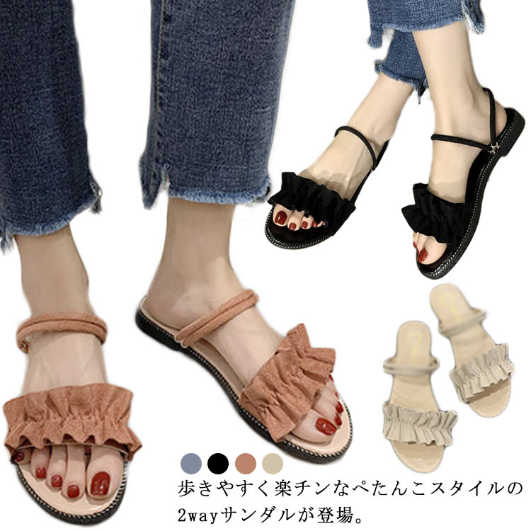サンダル レディース ストラップ サンダル シューズ フラットサンダル フラット ジュート風サンダル 2way ジュートサンダル ローヒール