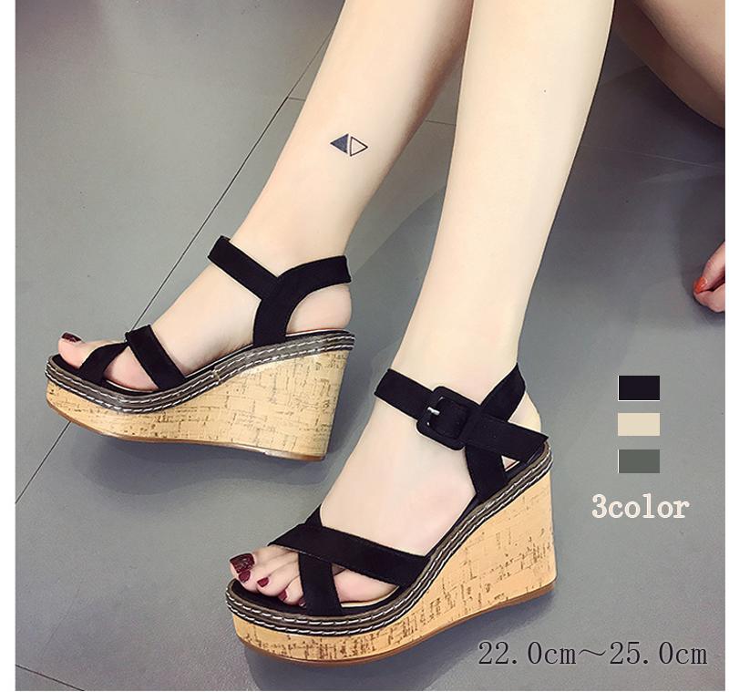ウェッジソール ストラップサンダル 内寸225-250mm 3cm 美脚靴 レディース靴 サンダル ストラップ