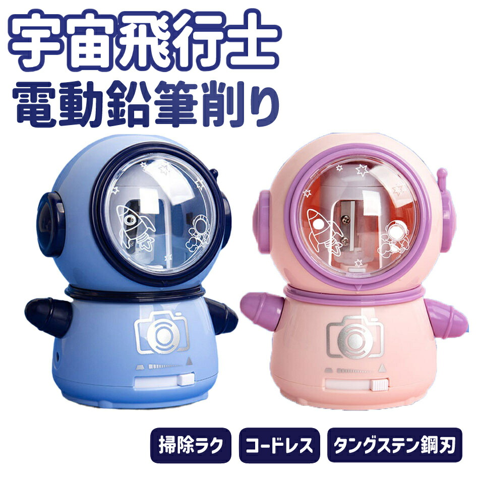 鉛筆削り 電動 宇宙飛行士 えんぴつ削り 鉛筆けずり 小学生 子供 タングステン鋼刃 女の子 男の子 かわいい おしゃれ 電動 電池 えんぴつけずり 透明 小型 充電 コードレス プッシュ式