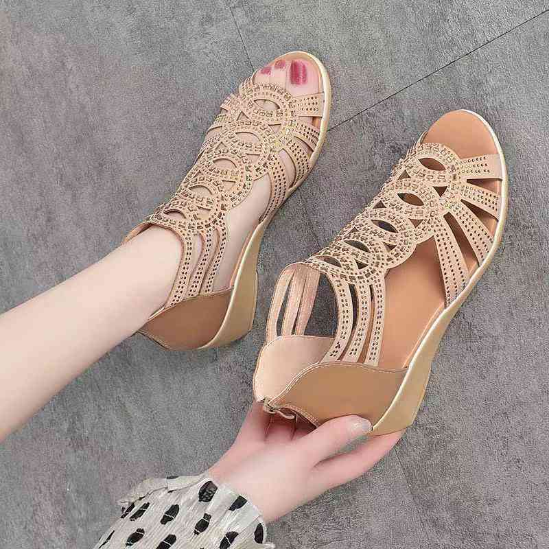サンダル グラディエーター 靴 レディース ブーツサンダル ウェッジソール キラキラ オープントゥ バックジップ 歩きやすい 疲れにくい